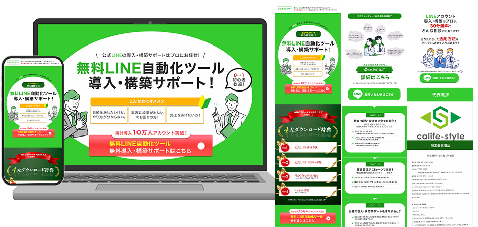 無料LINE自動化ツールの無料導入・構築サポートをしてほしい経営者の方向けへ予約に繋げるためのLPを作成いたしました。