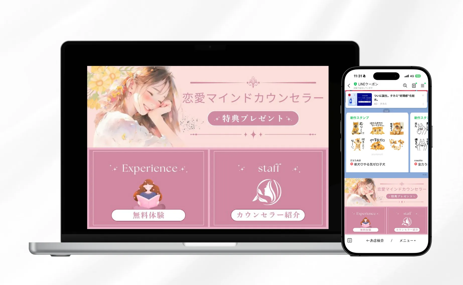 恋愛カウンセラーの方の優しさを全面に出すことを心がけて作成しました。